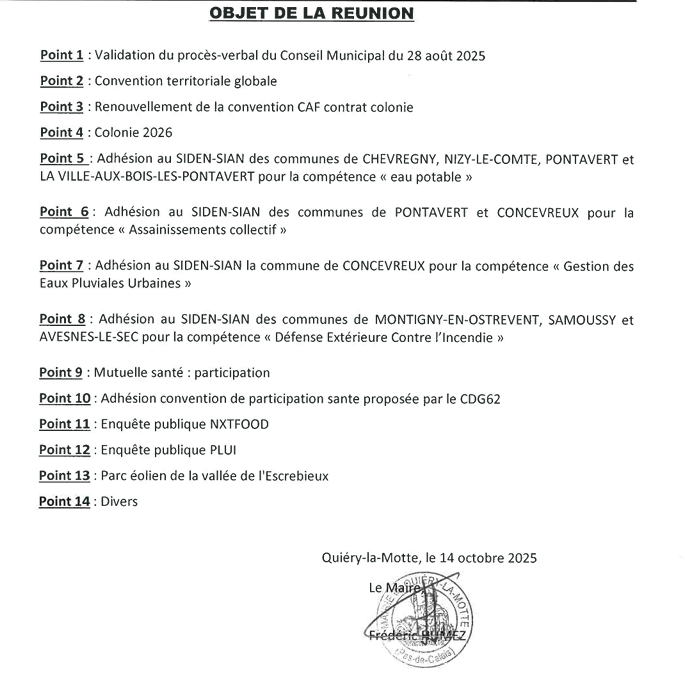 La prochaine réunion du conseil municipal aura lieu le 20 octobre à 19h Vous pouvez assister aux réunions du conseil municipal