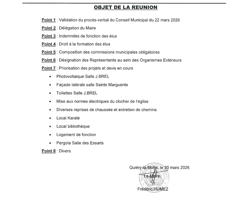 La prochaine réunion du conseil municipal aura lieu le 03 avril à 19h00 salle du conseil municipal Vous pouvez assister aux réunions du conseil municipal